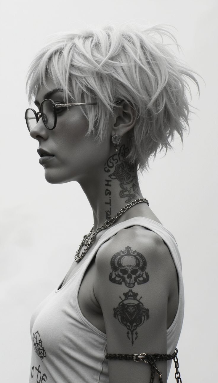 Смелая стрижка с выбритыми или очень короткими висками и длинной асимметричной челкой. Это стильный выбор для тех, кто предпочитает элементы андрогинности в своем имидже. Объем волос концентрируется в верхней части головы, что позволяет играть с текстурой.